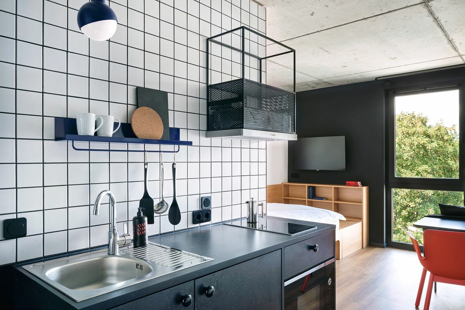 The day before your arrival, you will receive a message by email and WhatsApp with all the information you need to check in. The PIN code will give you access to the STAYERY. Use your booking number to check in at our check-in (disguised as an ice cream cart). Simply follow the instructions on the tablet and you will receive your keycard. Our hosts are on site during the day and will be happy to help you. Otherwise you can reach us 24/7 by phone. You can check in at any time from 15:00 on the day of arrival.