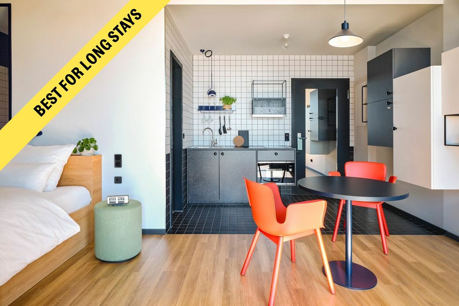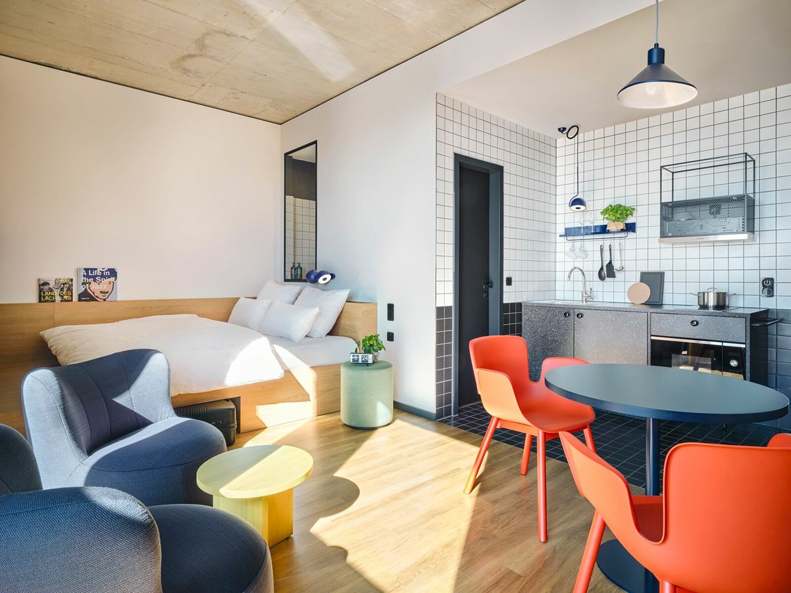 The day before your arrival, you will receive a message by email and WhatsApp with all the information you need to check in. The PIN code will give you access to the STAYERY. Use your booking number to check in at our check-in (disguised as an ice cream cart). Simply follow the instructions on the tablet and you will receive your keycard. Our hosts are on site during the day and will be happy to help you. Otherwise you can reach us 24/7 by phone. You can check in at any time from 15:00 on the day of arrival.